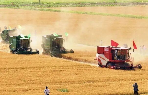 内蒙古巴彦淖尔市临河区农民收获小麦。河套地区因有黄河水灌溉,是重要农业区。该地区也是古代匈奴、鲜卑、突厥、回纥、汉等多民族交往交流交融之地。(图片来源:新华社)