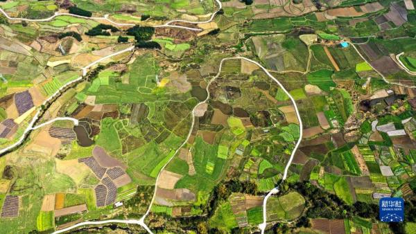 广西融安县潭头乡新桂村的春耕田园景色(3月17日摄,无人机照片)。