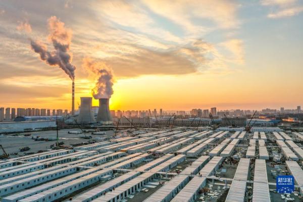 这是3月20日傍晚拍摄的吉林市高新南区隔离方舱建设现场(无人机照片)。