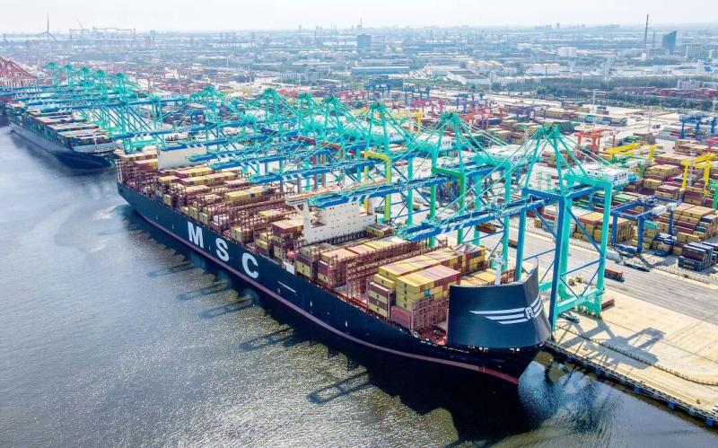 “随着船舶大型化趋势愈发明显,集装箱船舶的装卸作业量也在不断增加,面对如此巨大的作业量,我们充分发挥‘智慧零碳’码头的技术优势,联合船公司、口岸部门等单位多措并举,保障‘地中海阿林娜’号的装卸效率。”冯淼说,“比如,我们内部实时动态调整作业计划,以便各环节高效衔接;再比如,我们采用了‘边装边卸’的工艺,再配合‘船边直提’作业模式,最大限度地为装卸‘洪峰’降压。此外,通过积极协调船公司调整积载船图、对接堆场车队针对性提高疏运效率等,码头也实现了大吞吐量的接卸平衡,同船方、港方、外部堆场车队携手做到了高效协同。”