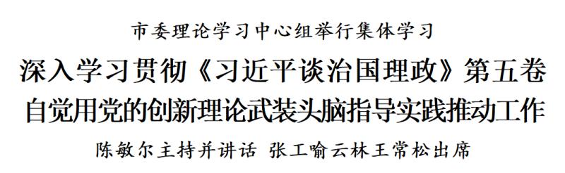 陈敏尔强调,要持续做好《习近平谈治国理政》第五卷学习贯彻工作,在学懂弄通做实上下功夫,用心学、用情讲、用力做。抓好学习培训,把第五卷和第一卷至第四卷作为一个整体贯通起来学,发挥领导干部领学、带学、促学作用,引导党员、干部读原著、学原文、悟原理,做到入脑入心、笃信笃行。抓好宣传阐释,加强对象化、分众化宣讲宣传,深入开展体系化学理化研究阐释,不断增强吸引力感染力。抓好转化落实,紧密联系工作实际和思想实际,自觉运用党的创新理论研究新情况、解决新问题,切实把学习成果转化为做好工作的强大动力和实际成效,奋力完成全年经济社会发展目标任务。