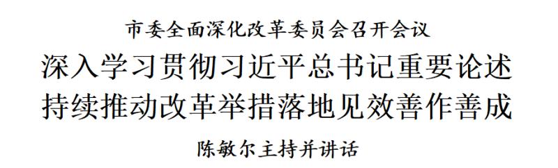 市委书记、市委全面深化改革委员会主任陈敏尔主持会议并讲话。市委副书记、市长张工,市人大常委会主任喻云林,市政协主席王常松,市委全面深化改革委员会委员和有关市领导出席。