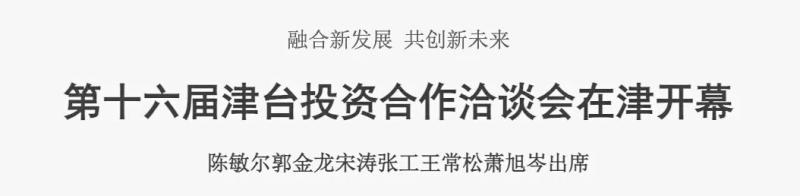 10月29日,第十六届津台投资合作洽谈会在津开幕。市委书记陈敏尔,两岸企业家峰会大陆方面理事长郭金龙,中共中央台办、国务院台办主任宋涛,市委副书记、市长张工,市政协主席王常松,中国国民党候任副主席萧旭岑,中国国民党中央评议委员会主席团主席刘大贝,全国台湾同胞投资企业联谊会会长李政宏等两岸嘉宾出席并共同启幕。两岸企业家峰会大陆方面秘书长、中国侨联原主席林军出席。20余位台湾政商界人士发来贺词贺信。