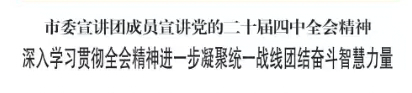 11月12日,我市统战系统党的二十届四中全会精神宣讲报告会举行。市委宣讲团成员,市委常委、市委统战部部长冀国强作专题宣讲报告,并与市委统战部青年理论学习小组成员互动交流。