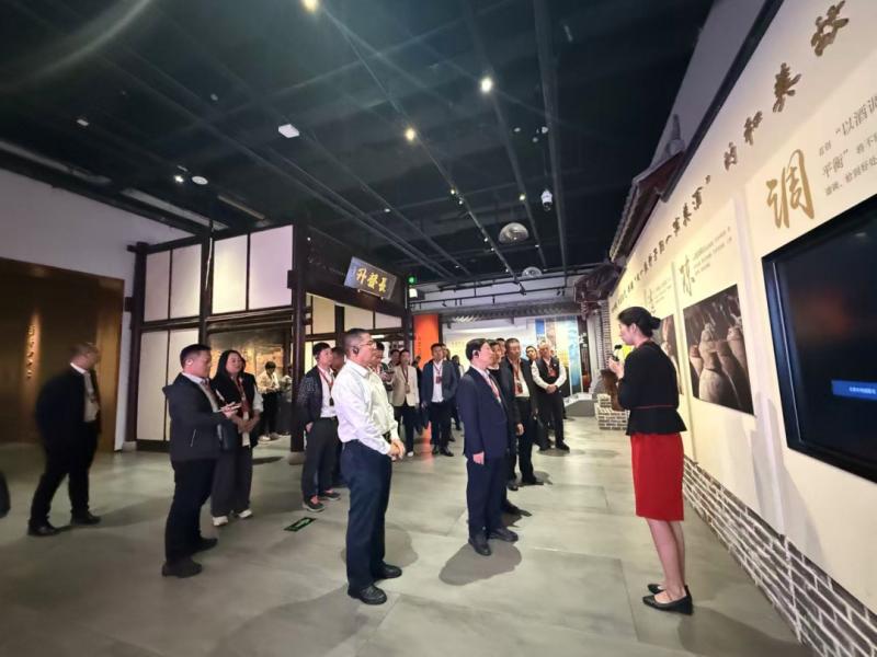 在酒旅融合与品牌传承标杆——四川五粮液文化旅游开发有限公司,参观现代化酿造车间与酒文化博物馆,体验酒文化研学、品鉴项目,考察公司运营模式。学员们重点学习其以核心品牌IP赋能文旅产业的实践路径,通过定制化研学项目、沉浸式品鉴体验等,实现“生产场景”向“文旅打卡地”的转化。座谈交流会上,宁河区工商联(总商会)与宜宾市工商联(总商会)签订战略合作协议,为两地今后更好合作发展夯实基础。