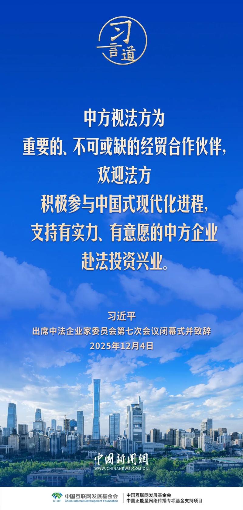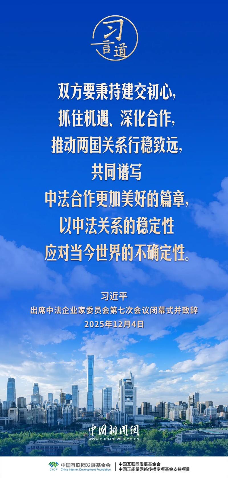 12月4日,国家主席习近平在北京同法国总统马克龙共同出席中法企业家委员会第七次会议闭幕式并致辞。习近平指出——