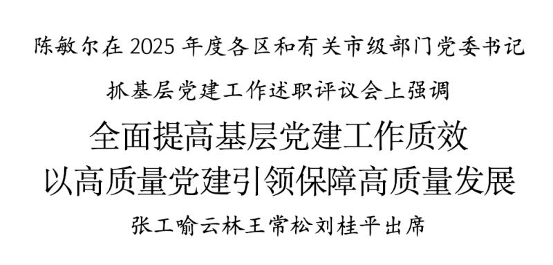 1月6日,市委召开2025年度各区和有关市级部门党委书记抓基层党建工作述职评议会。市委书记陈敏尔主持会议并讲话。他强调,要深入贯彻习近平总书记关于党的建设的重要思想和视察天津重要讲话精神,以中央巡视反馈意见整改落实为契机,进一步压紧压实管党治党政治责任,全面提高我市基层党建工作质效,以高质量党建引领保障高质量发展,以实际行动体现深刻领悟“两个确立”的决定性意义、坚决做到“两个维护”。