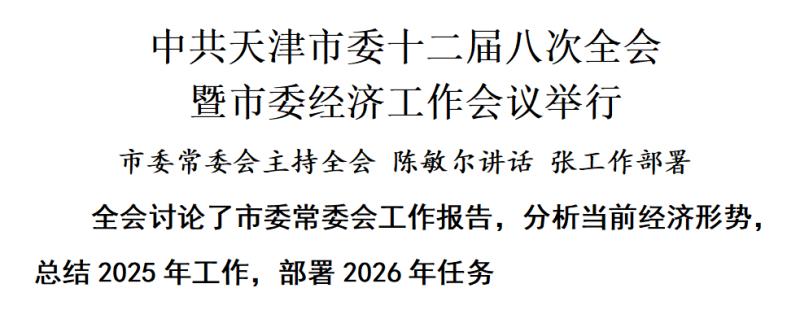 中国共产党天津市第十二届委员会第八次全体会议,于2025年12月29日召开。